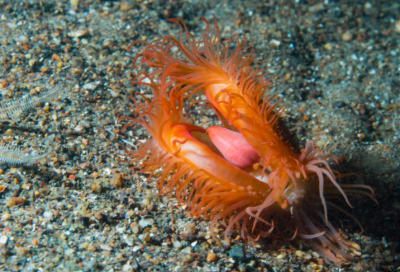 Flame Shells have a huge ecological importance: as they cannot retract their mantles and tentacles, they protect themselves by hiding within nests. They swim around collecting shells and gravel in their tentacles, which they bind together using strong, sticky filament secretions called byssal threads. Over time, the nests expand and overlap, creating expansive mats of beds. These beds are habitat to 265 invertebrate species, 19 algae species and provide important protection for developing cod young and scallop spat. The flame shell beds also stabilise the seabed, and aid with carbon sequestration and nutrient cycling within the water.