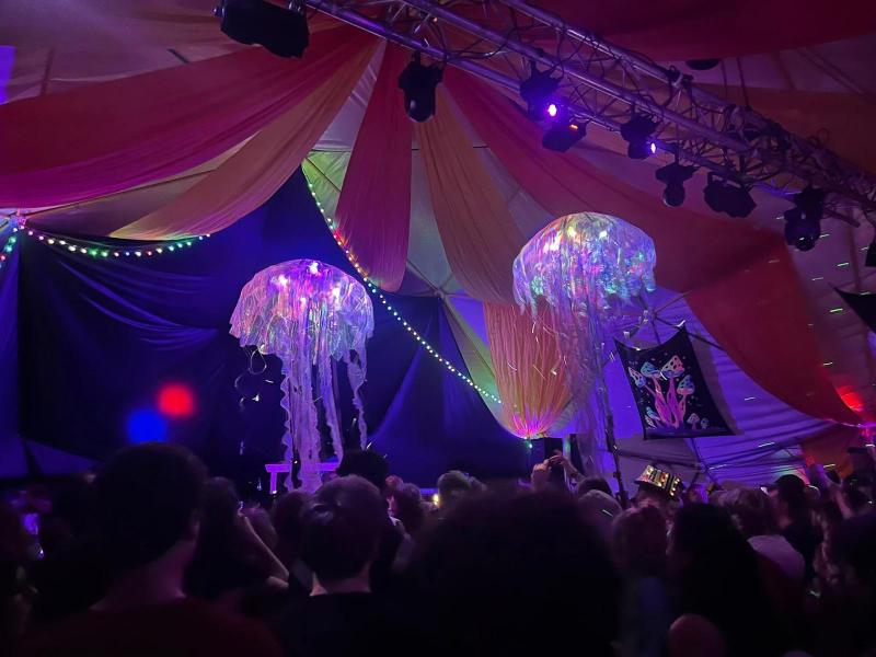 In the evenings, we also performed our Dance of the Sea Nettles, a movement piece involving two giant jelly fish puppets, celebrating marine life, which drifted like phosphorescent light through the twilight crowds, generating much joy!